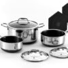 Ergonomic stainless steel handles stay cool longer during cooking, providing comfort and safety.
